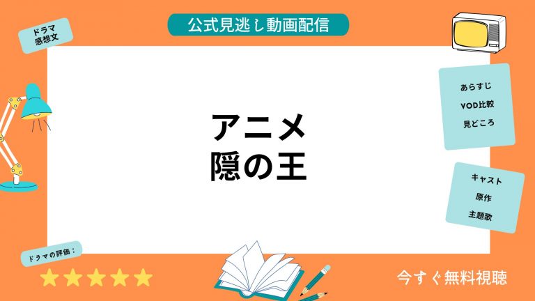 この記事ではアニメ「隠の王」の動画が全話無料でお得に見ることができる動画配信サイトや無料動画サイトを調査し、まとめました。