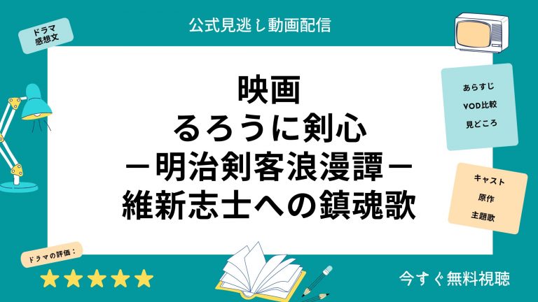 この記事では劇場版(映画)「るろうに剣心-明治剣客浪漫譚-維新志士への鎮魂歌(略名)」の配信動画が無料でフル視聴できるお得に見ることができる動画配信サイトや無料動画サイトを調査し、まとめました。