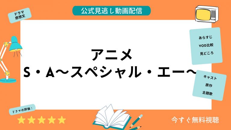 この記事ではアニメ「S・A〜スペシャル・エー〜」の動画が全話無料でお得に見ることができる動画配信サイトや無料動画サイトを調査し、まとめました。