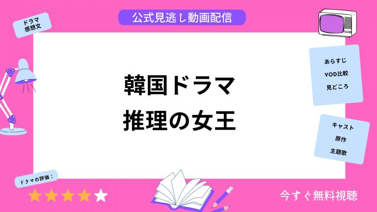この記事では韓国ドラマ「推理の女王」の動画が全話無料でお得に見ることができる動画配信サイトや無料動画サイトを調査し、まとめました。