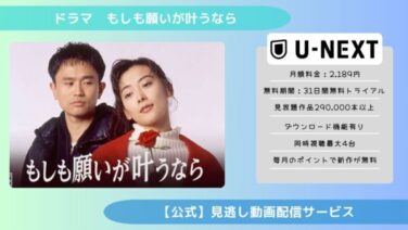 最終更新日:2024年7月19日|ドラマ『もしも願いが叶うなら』の配信動画を無料トライアルで視聴できる動画配信サービスは「U-NEXT」が一番お得!YouTubeやTVerなど無料動画配信サイトのような広告は無しでドラマ『もしも願いが叶うなら』を1話から最終回まで無料トライアルで一気に視聴可能です☆中山美穂と浜田雅功のラブコメディ、兄弟愛の絆、笑えて泣けるとても面白いドラマです!