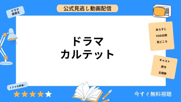 国内ドラマ ドラマ『カルテット』配信動画を全話無料視聴できる動画配信サービス比較 ドラマ『カルテット』の動画を全話無料視聴できる動画配信サービスは「TSUTAYA DISCAS」のDVDレンタルが一番お得!YouTubeやGYAO・TVerなど無料動画配信サイトのような広告は無しでドラマ『カルテット』を1話から最終回まで無料で一気に視聴可能です☆ドラマは常に進化することを実感させる名作です。 2022.09.29 国内ドラマ